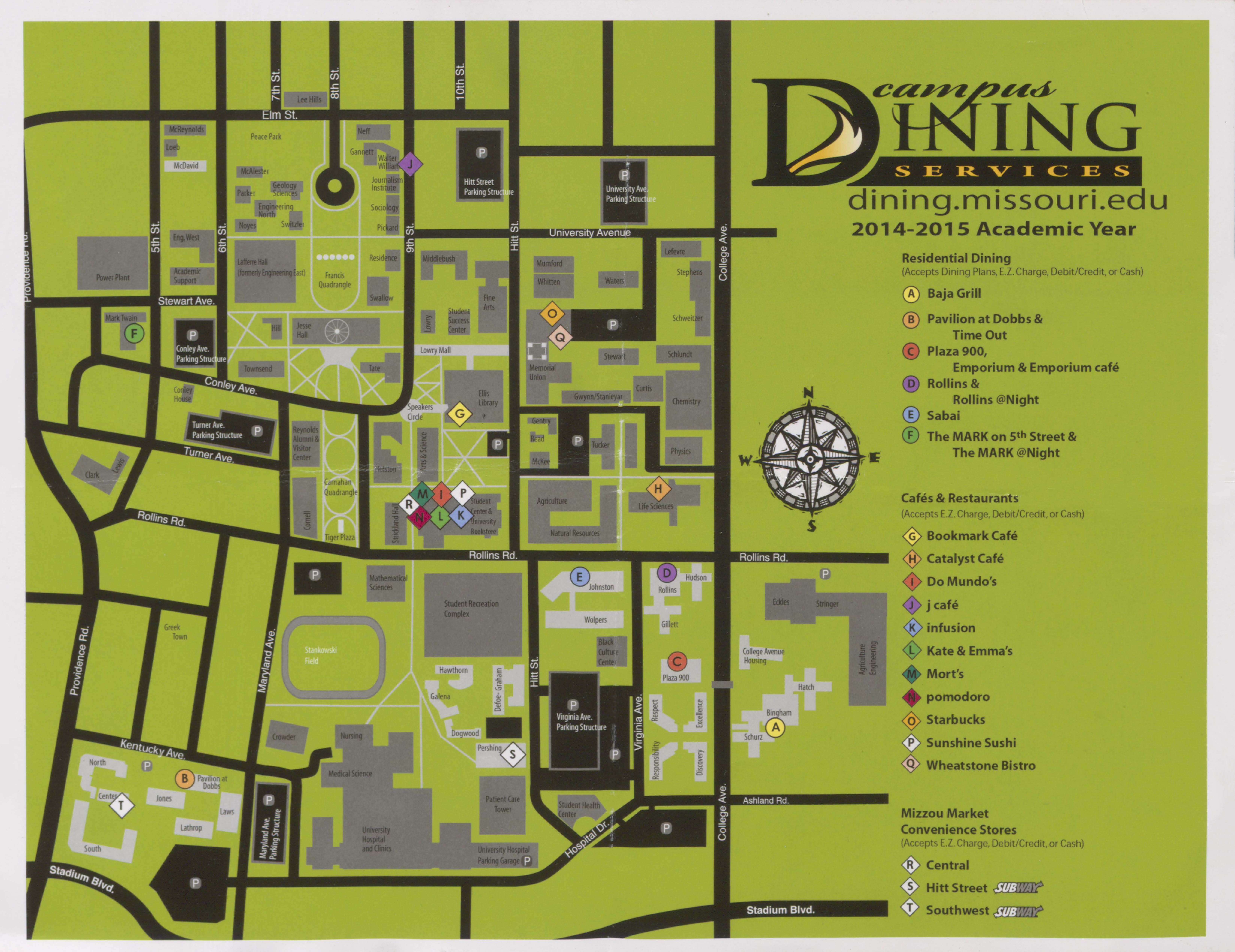 This map shows the various dining options available to students during the 2014-2015 academic year.