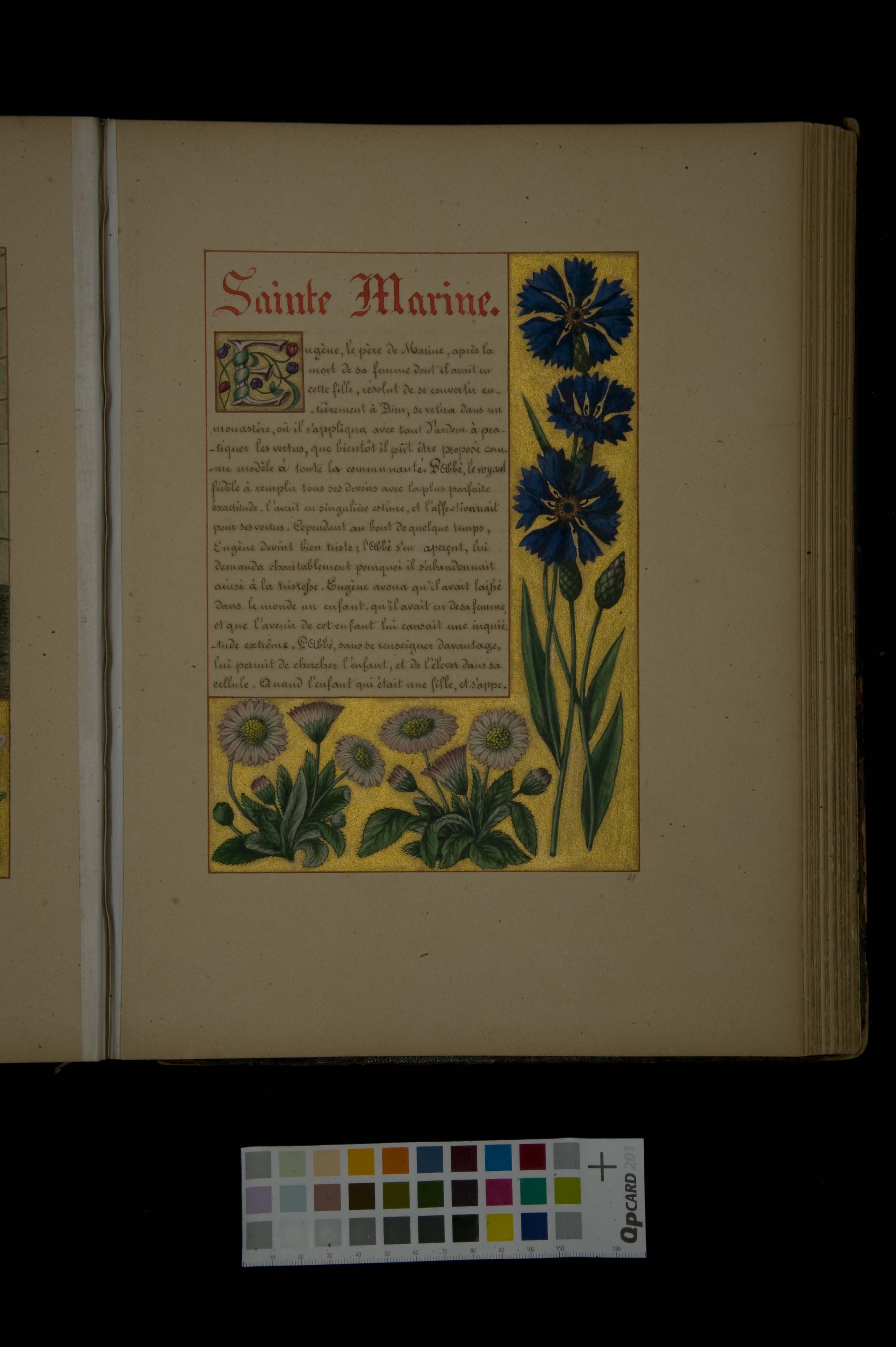 Decorated border: Two-sided border decorated with cornflowers and carnations. Scanned page of the 1887 Weckerlin illuminated manuscript housed at Mount St. Scholastica, a Benedictine convent in Atchinson Kansas.