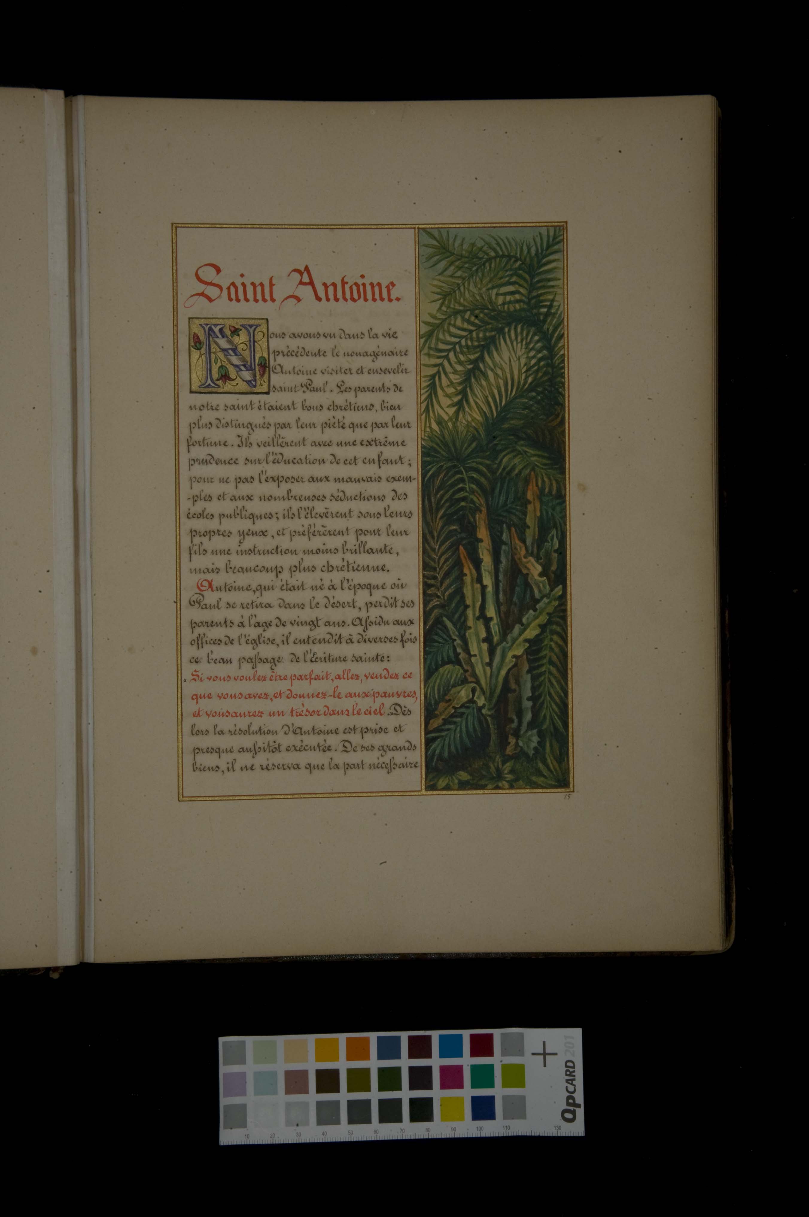 Decorated border: One-sided border decorated with ferns. Scanned page of the 1887 Weckerlin illuminated manuscript housed at Mount St. Scholastica, a Benedictine convent in Atchinson Kansas.
