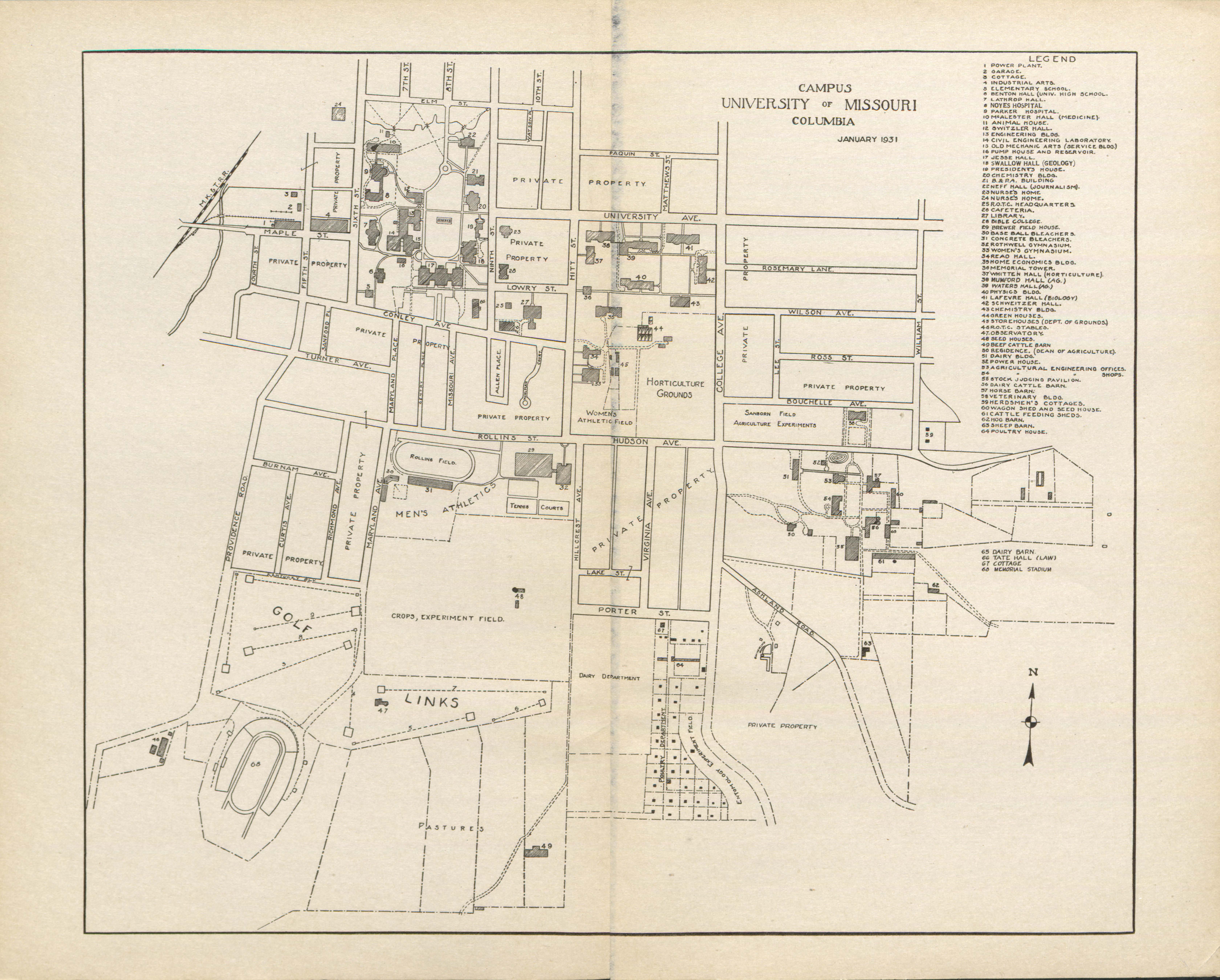 This map shows the locations of buildings on the University of Missouri campus, labeled by number.